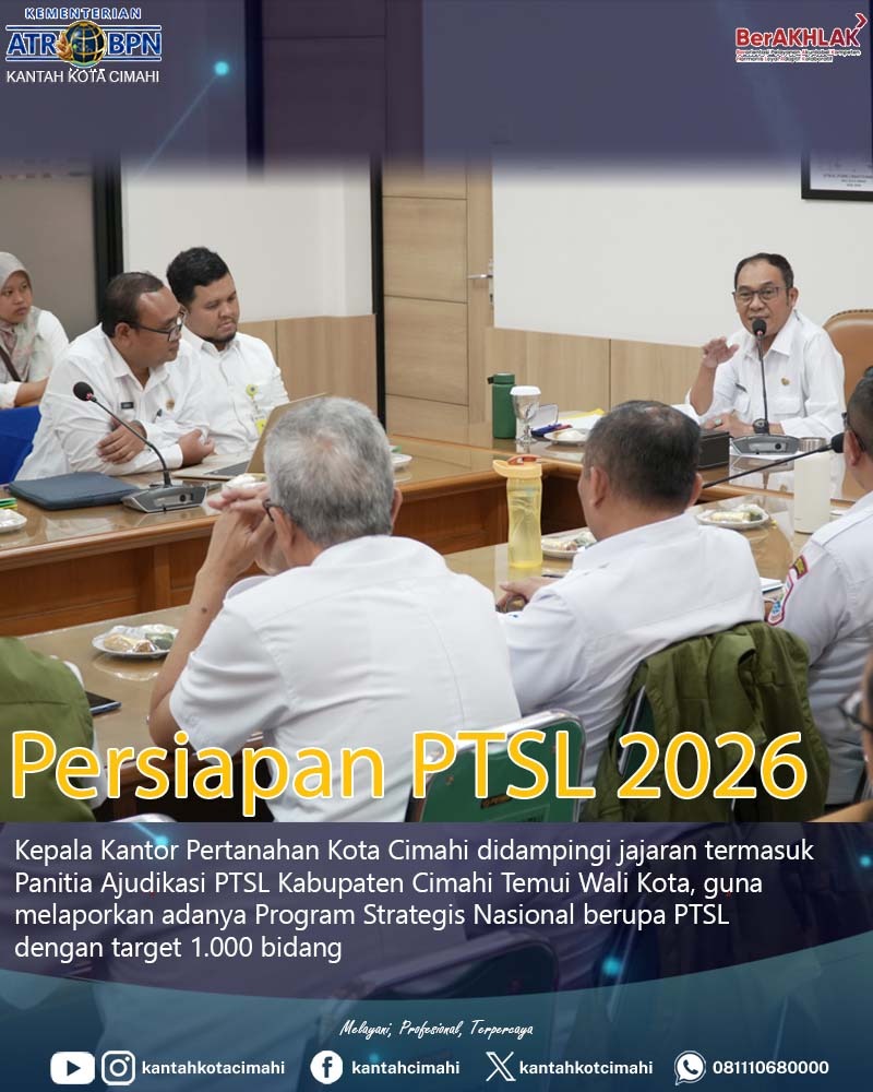 Wali Kota Cimahi Bersama BPN Kota Cimahi Targetkan 1000 Sertifikat Lewat PTSL 2026