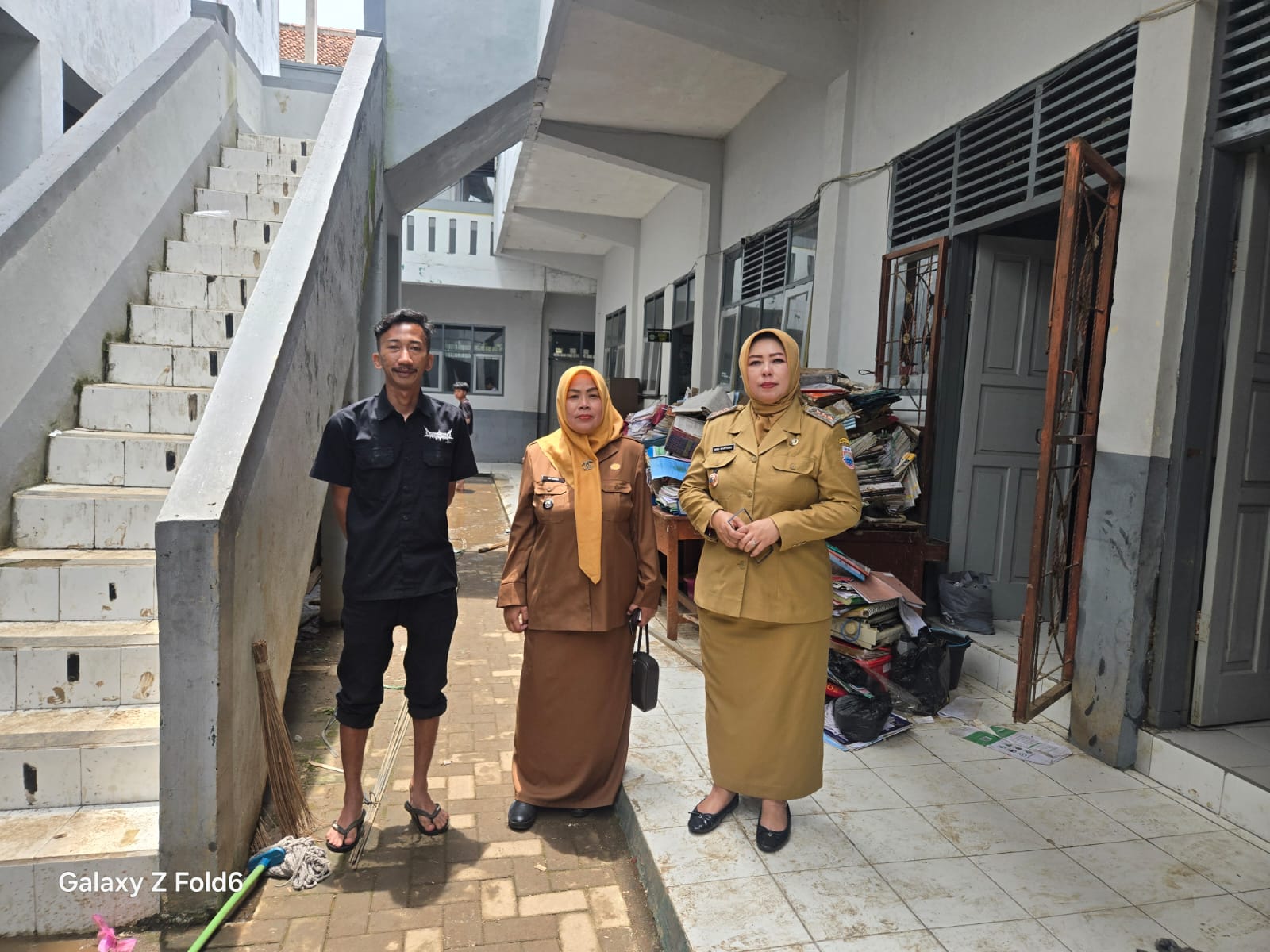 banjir yang terjadi di SMK MTS Mohamad Toha Cimahi dan saya bersama Lurah Utama